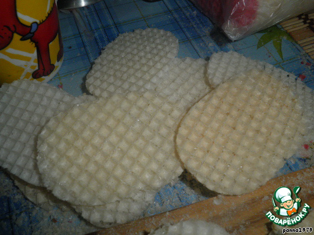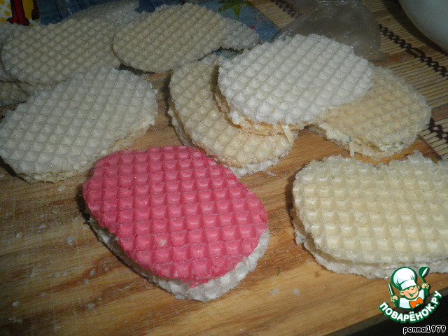 У меня завалялась упаковка фигурных вафельных коржиков. Вот такие вафельки были у меня.