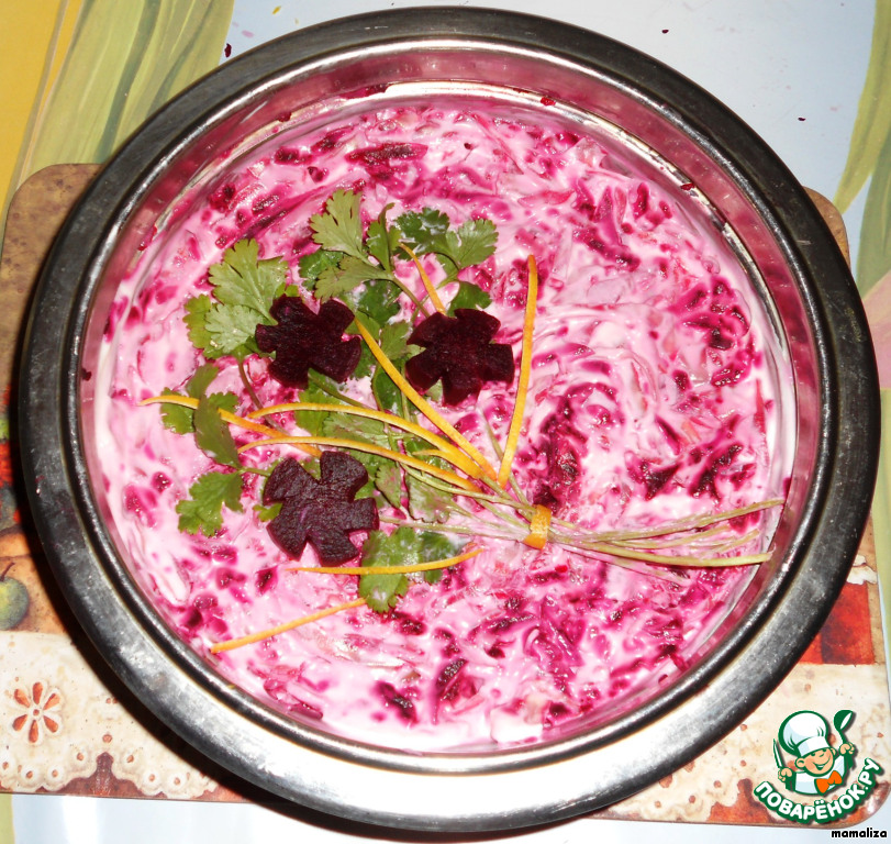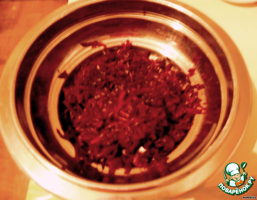 Отварную свеклу натереть на средней терке. (Приношу извинения за качество фотографий).