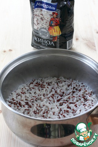 Микс киноа тщательно промыть несколько раз, чтобы смыть горечь, и также отварить до готовности. Я использовала в этот раз готовую смесь киноа с басмати, белый рис с красноватыми вкраплениями киноа будет не только красиво смотреться, но и послужит основой нашего тартара, на которой будет держаться вся конструкция.