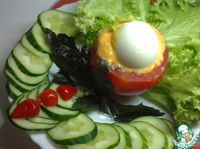 | Яйца в помидорах - это необычная закуска, она привлекает своей подачей и вкусом. Простая и лёгкая. Блюдо быстро готовится, а также быстро съедается. Такая закуска порадует домашних и гостей своей яркостью и необычностью. |