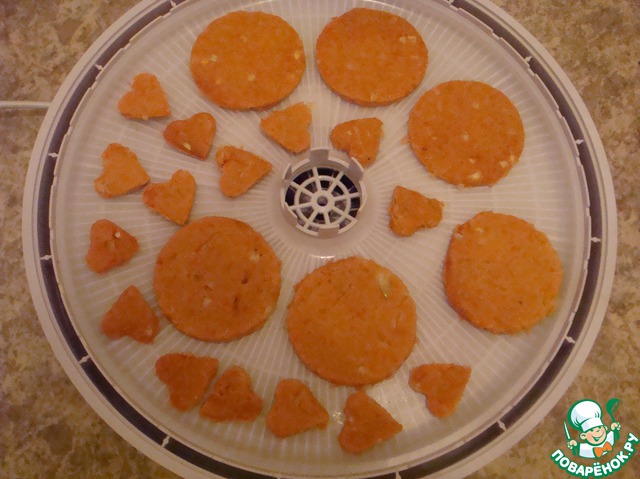 Сушить при температуре 45 градусов около 12 часов. Примерно через 6 часов нарезать подсушенную массу и продолжать сушить на решетке.