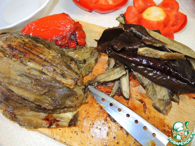 Достать запеченные овощи из духовки, немного остудить и очистить от кожицы. Она снимается легко.