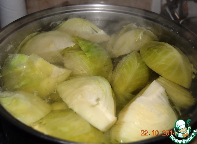 Для капусты маринованной со свеклой нужно отварить в течении 30-40 минут, капусту, разрезаную на 4 части, или 6 частей взависимости от величины капусты. Отдельно отварить свеклу и порезать полу кольцами.