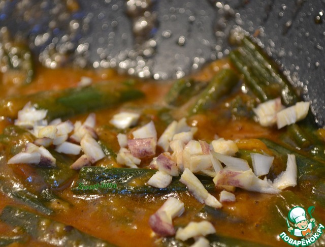 Выключить и добавить чеснок. Закрыть крышкой, чтобы настоялось.