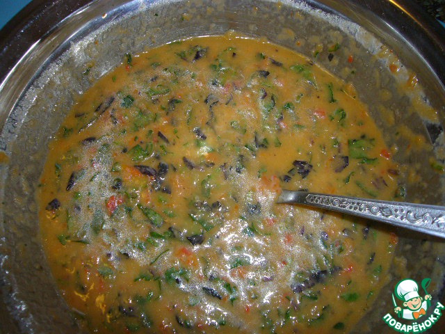 Затем овощное пюре посолить, поперчить и добавить приготовленную зелень.