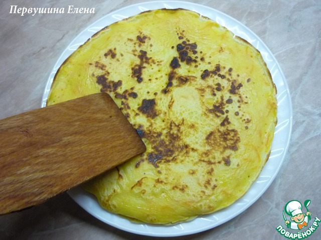 Черпать стандартным половником и выливать на разогретую и смазанную маслом (1 раз) сковороду. Жарить с двух сторон.