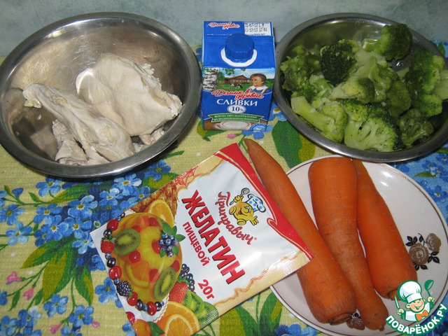 Продукты для желе. Филе, брокколи и морковь отварить.