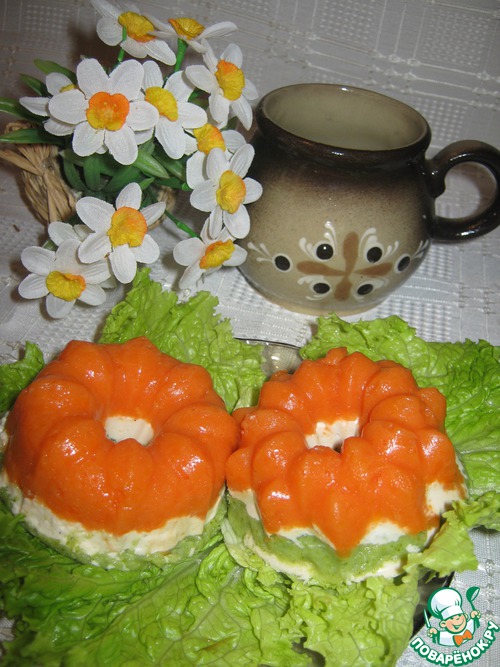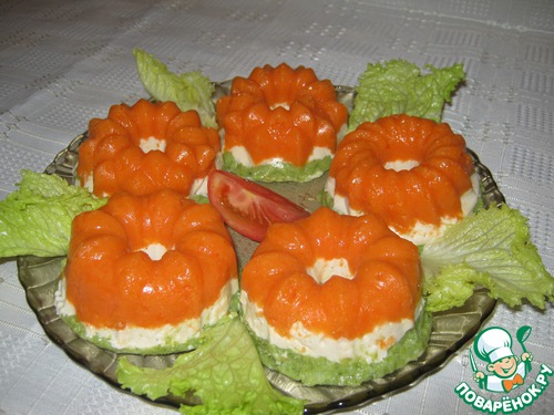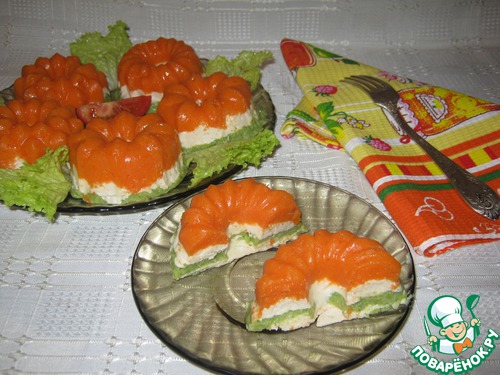 Застывшее желе вынимаем из форм и подаем. Такая закуска может украсить любой праздничный стол. Она не только полезна, но и красива.