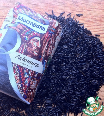 Дикий рис (не путать с чёрным рисом) от Мистраль залить водой в соотношении 1:3, довести до кипения и варить под крышкой на минимальном огне около 50 минут. Рис готов, когда большая часть зернышек раскроется.