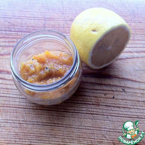 Курагу вместе с жидкостью пробить погружным блендером. Добавить сок и цедру лимона, масло грецкого ореха, соль и черный перец.