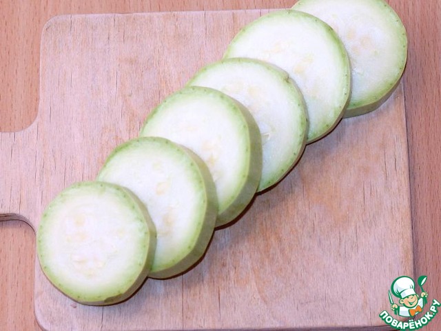 и кабачки моем, обсушиваем и нарезаем кружочками (примерно 1,5-2 см в высоту).