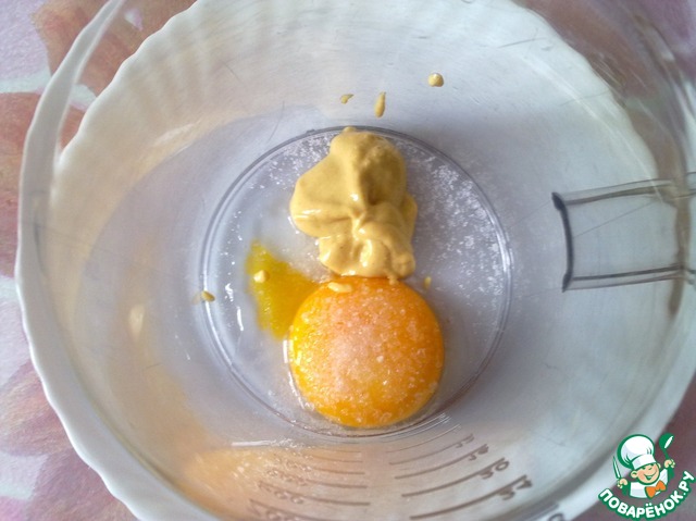 Делаем соус для начинки. (Не судите меня строго, т. к. это рецепт не новый, но все же повторюсь). Желток взбиваем с горчицей и щепоткой соли.
