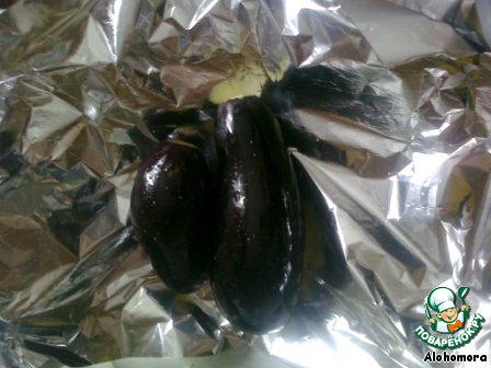 Баклажаны помыть, обрезать хвостик, слегка (!) смазать растительным маслом и плотно завернуть в фольгу)))