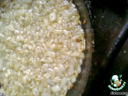 Лук мелко режем и обжариваем на растительном масле. в конце жарки добавляем измельченный чеснок и хмели-сунели