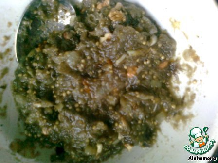 Баклажаны измельчаем на мясорубке или блендером, добавляем лук, орехи и солим по вкусу. Любители острого могут добавить красного перца.