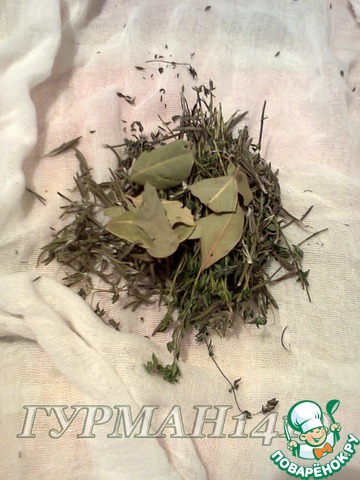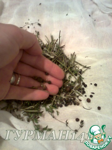 Когда специи уложены, марлю завязать мешочком на узелок.