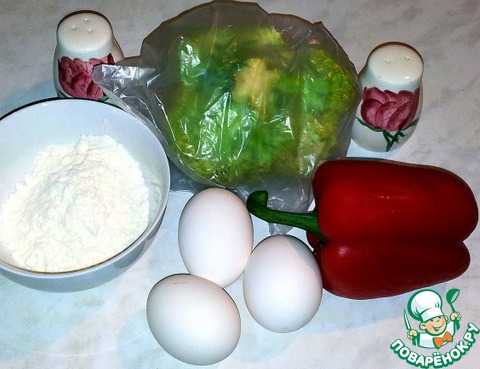 Ингредиенты - брокколи, яйца, мука, соль, болгарский и чёрный молотый перец.