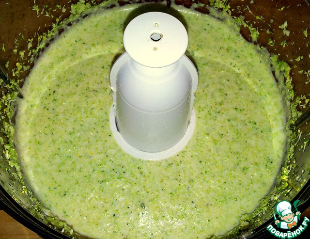 ( Я со своим рецептом забежала немного вперёд... После разносолов за Новогодним столом и различных выпитых напитков хочется чего - нибудь полегче. И я предлагаю лёгкий, полезный и быстрый завтрак. ) Брокколи разделить на соцветия, промыть в сите под проточной водой и встряхнуть. Брокколи, яйца, соль, зелень, специи погрузить в комбайн и всё измельчить.