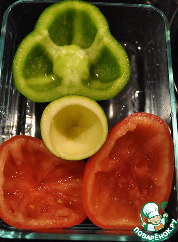 Овощи приготовим для запекания - вычистим мякоть и отложим её отдельно в сковороду для жарки.