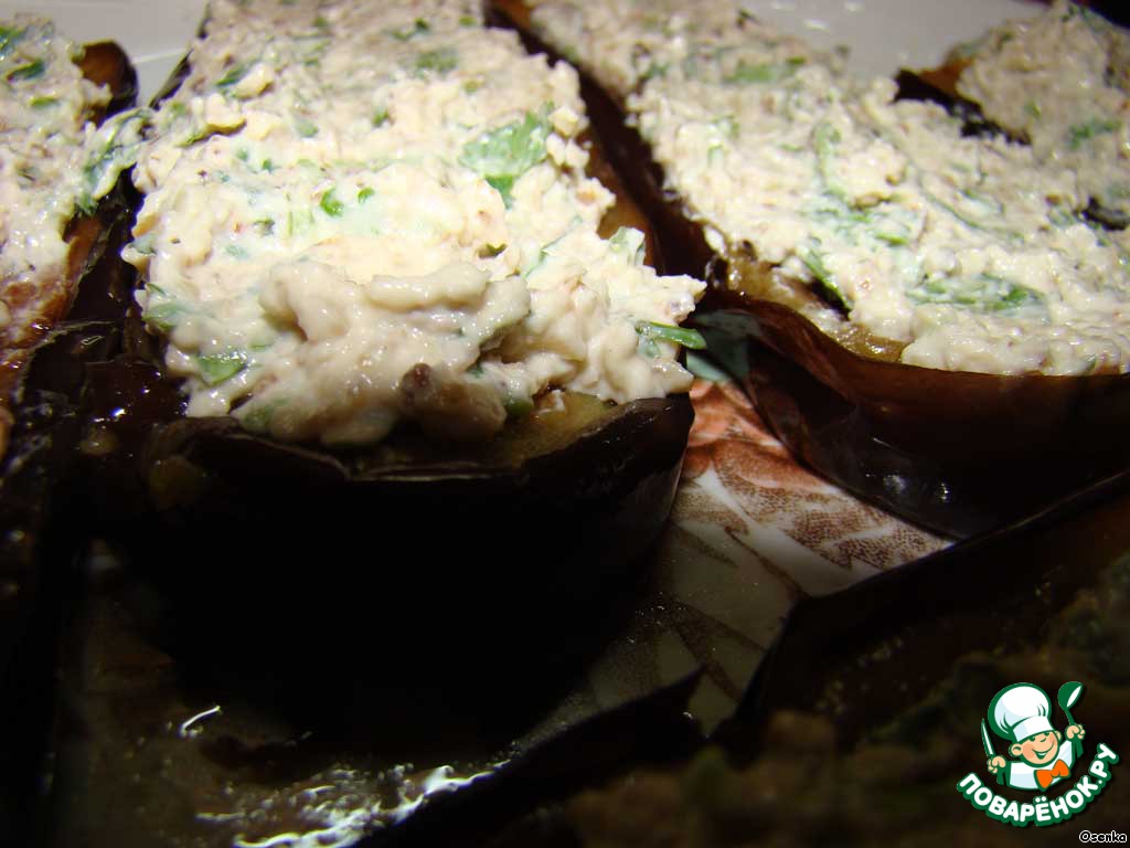 Добавить майонез, всё перемешать до такой консистенции, чтобы можно было легко распределять по баклажанам. Майонез тоже берите по вкусу, можете увеличить или уменьшить его количество.