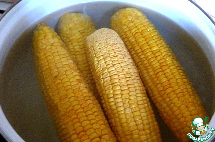 Отвариваем кукурузу в подсоленной воде чуть больше часа.