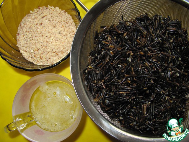 Соединить отваренный дикий рис, белок, миндальную крошку, кукурузный крахмал.