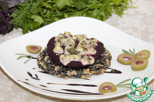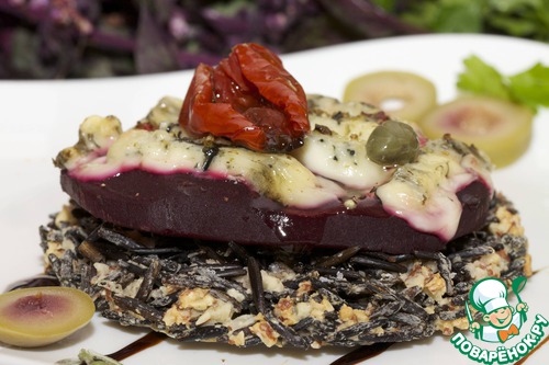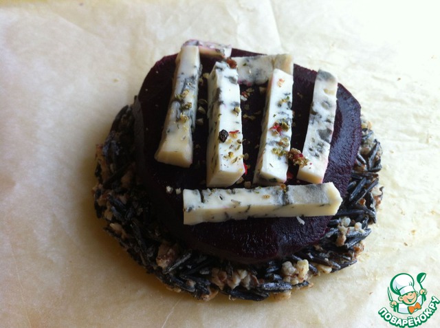 На испеченную галету выложить ломтик свеклы, кусочки сыра, свежесмолотый перец и тимьян. Поставить в разогретую духовку под гриль до расплавления сыра. Галету можно украсить вялеными помидорами, каперсами, зеленью по Вашему вкусу.