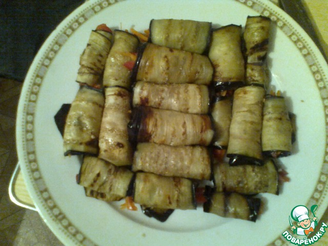 | Я очень люблю баклажаны. Это один из самых прекрасных овощей. Из них можно делать икру, их можно фаршировать, консервировать, запекать и еще много чего. Для меня (да и в принципе, наверное) лучше всего баклажан сочетается с чесноком, морковкой, помидором и красным болгарским перцем. Но делать все время такой вот салат, как-то, банально, хотелось немного разнообразить хотя бы подачу всех этих ингредиентов)) Вот пришло в голову сделать такие рулетики. |