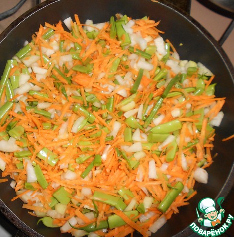 Все сложить в сковороду и жарить 15 минут на оливковом (можно подсолнечном) масле