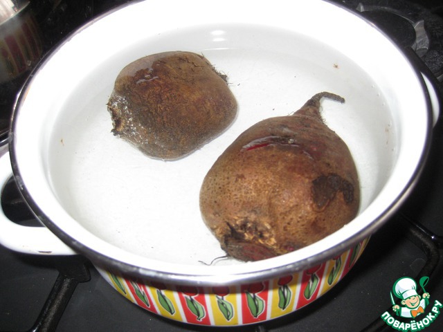 Свеклу положить в кастрюлю с холодной водой и поставить вариться до полной готовности (не чистить). Также отдельно отварить картофель в мундире.