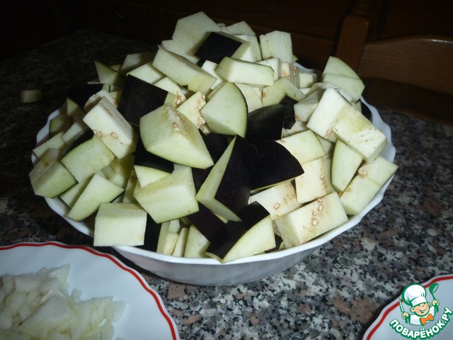Нарезаем баклажаны кубиками.