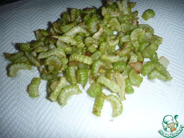 Обжариваем лук, сельдерей, баклажаны в большом кол. растительного масла. Все отдельно. Лучше обжаривать в несколько подходов.