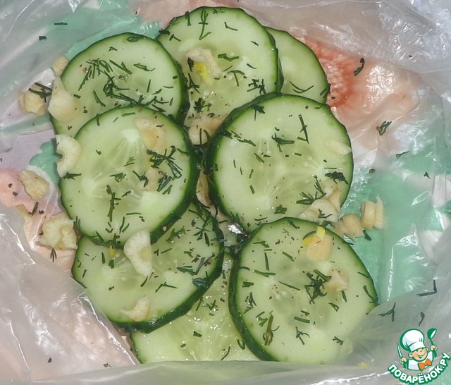 Завязать пакет и перетереть огурцы. Оставляем в холодильнике на 30 минут или 1 час.