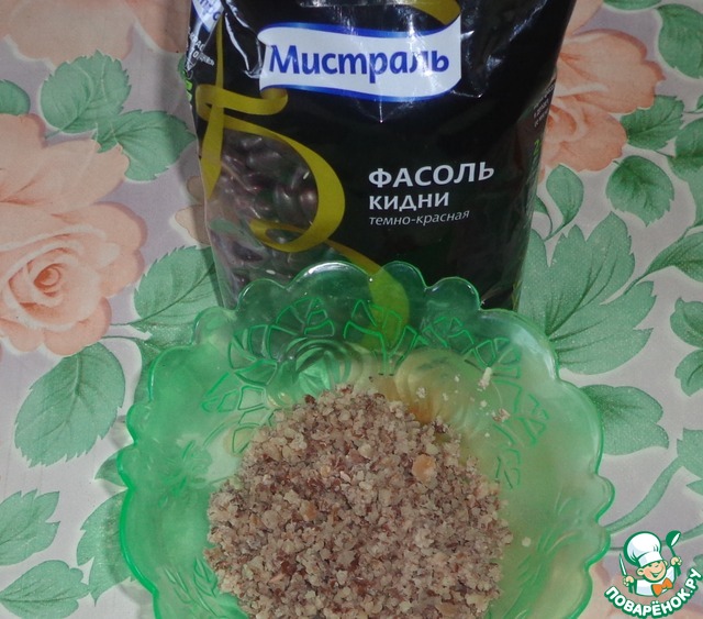 Фасоль предварительно замачиваем на 4 часа, затем отварить до готовности. Остудить и пропустить через мясорубку.