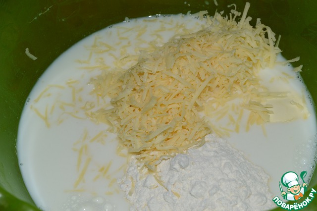 С помощью блендера взбить в однородную массу сыр, молоко, муку и 2 ст. л. сливочного масла. Посолить, перемешать.