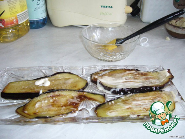 Порезать баклажаны вдоль на пласты (в виде языков). Слегка присолить.