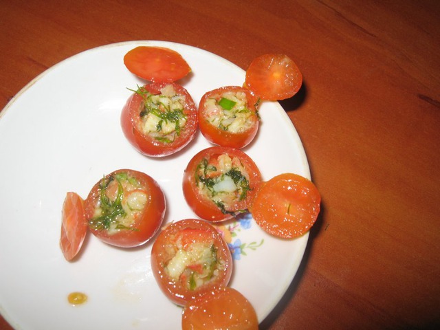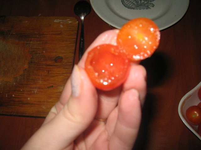 Помойте помидорчики и вытащите из них внутреннее содержание.