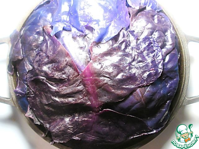 Листья капусты слегка отбейте. В сковороду 26 см в диаметре внахлест положите 6 листьев капусты, полностью закрыв ими дно и бока.