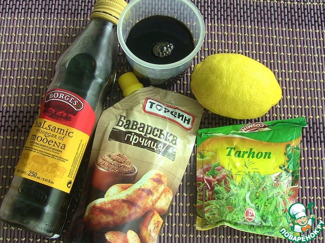 Для маринада смешиваем соевый соус, бальзамик, сок 1 лимона, 2-3 ст. л. горчицы, приправы по вкусу, хорошо перемешать. Овощи порезать и перемешать с маринадом. Оставить на 20-30 минут, можно на ночь.