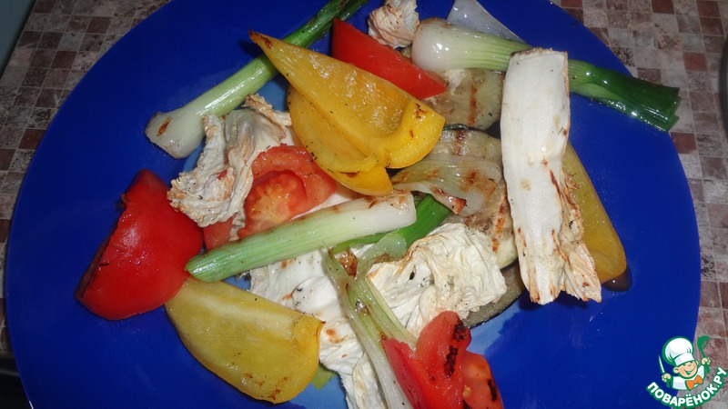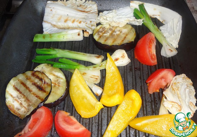 Берём набор овощей, который оказался у нас в холодильнике и который можно обжарить на гриле.