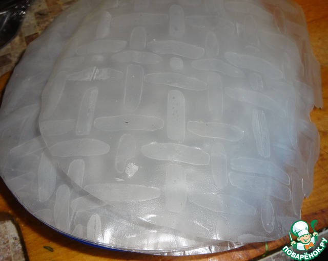После этого нужно взять листочек рисовой бумаги, подержать его в холодной воде 10-15 сек. После этого бумага станет эластичная, и в неё легко можно будет завернуть наши овощи. При желании каждый спринг-ролл можно разрезать пополам, а можно и так подать.