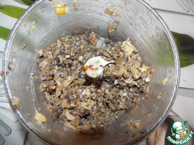 У меня осталась начинка и подумав куда ее девать.. Добавила к ней 5 столовых ложек муки и пожарила оладки.. Получились горохово- грибные оладушки.. (Очень вкусно))
