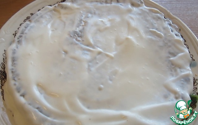 Верхний корж тоже смазываем сметаной и... дальше фантазируем с оформлением)))