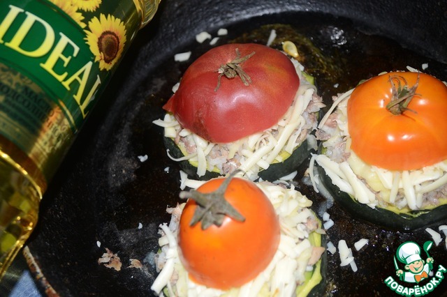 Цуккини с рыбным фаршем и помидорами
