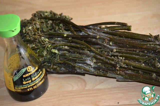 | Вкус свежего папоротника реально отличается от вкуса соленого, поэтому прошлой осенью я его просто заморозила и теперь жарю и делаю салаты. В сочетании с обжаренными овощами и соевым соусом ТМ Kikkoman свежий папоротник просто бесподобен! |