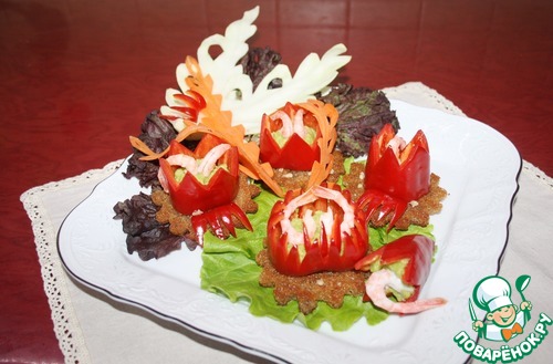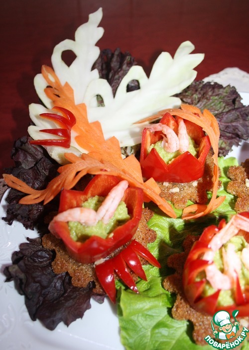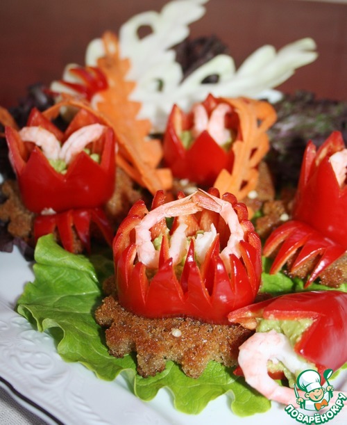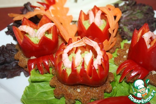 | Рецепт посвящается всем любителям авокадо. Яркие сочные цветы с изящной креветкой и хрустящей греночкой станут украшением любого праздничного стола или же раскрасят свежими тонами серые будни! |