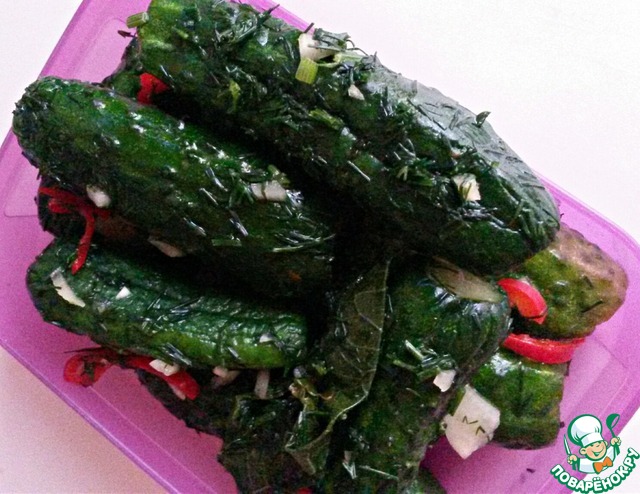 | Рецепт вкусных огурцов в собственном соку на скорую руку, перчик чили добавляет некоторую пикантность, все домашние обожают есть в прикуску к вареной картошке). Советую всем попробовать! |