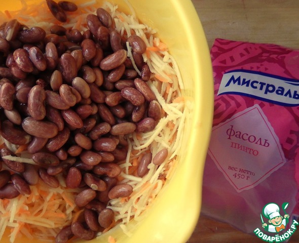 К овощам добавляем замоченную фасоль. Духовку включаем на разогрев на 180 градусов.