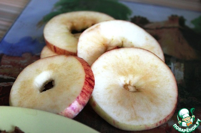 Яблоки тщательно мою и режу дольками, толщиной 0,5 см. Вырезаю серединку.