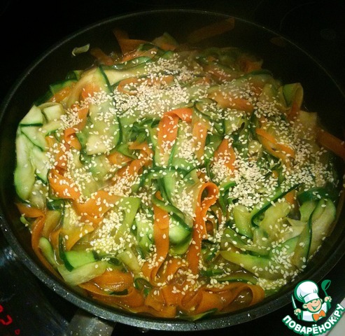 Вегетарианская лапша из цуккини и морковки с кунжутом